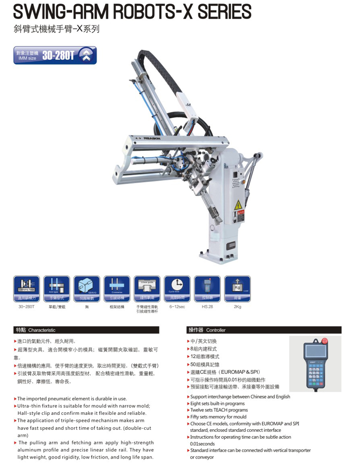 倍速机构的应用,使手臂的速度更快 取出时间更短.(双截式手臂)